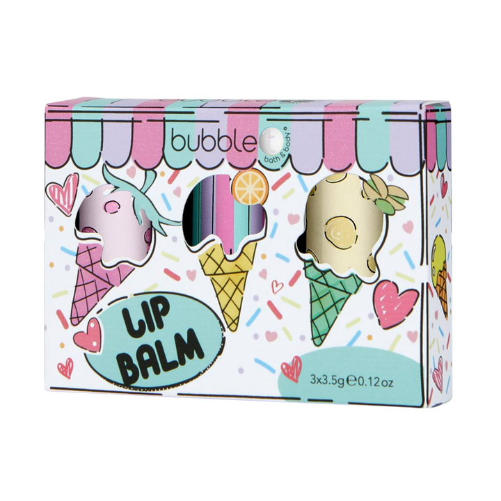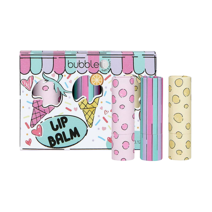 Keep lips soft, smooth, and deliciously scented with the Bubble T Lip Balm Gift Set. This 3-piece collection features fun, sweetly inspired flavors while delivering lasting hydration and nourishment: