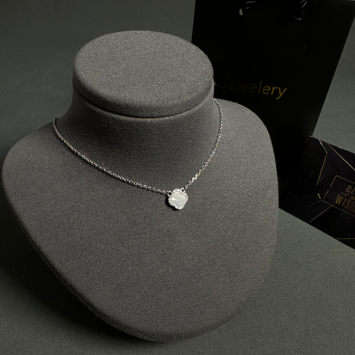 A symbol of elegance and subtle charm — the Serene Bloom Necklace is crafted from authentic 925 Italian silver, weighing 5 grams of refined beauty. The delicate clover-shaped pendant adds a touch of timeless grace, making it a piece she can wear every day or on special occasions.