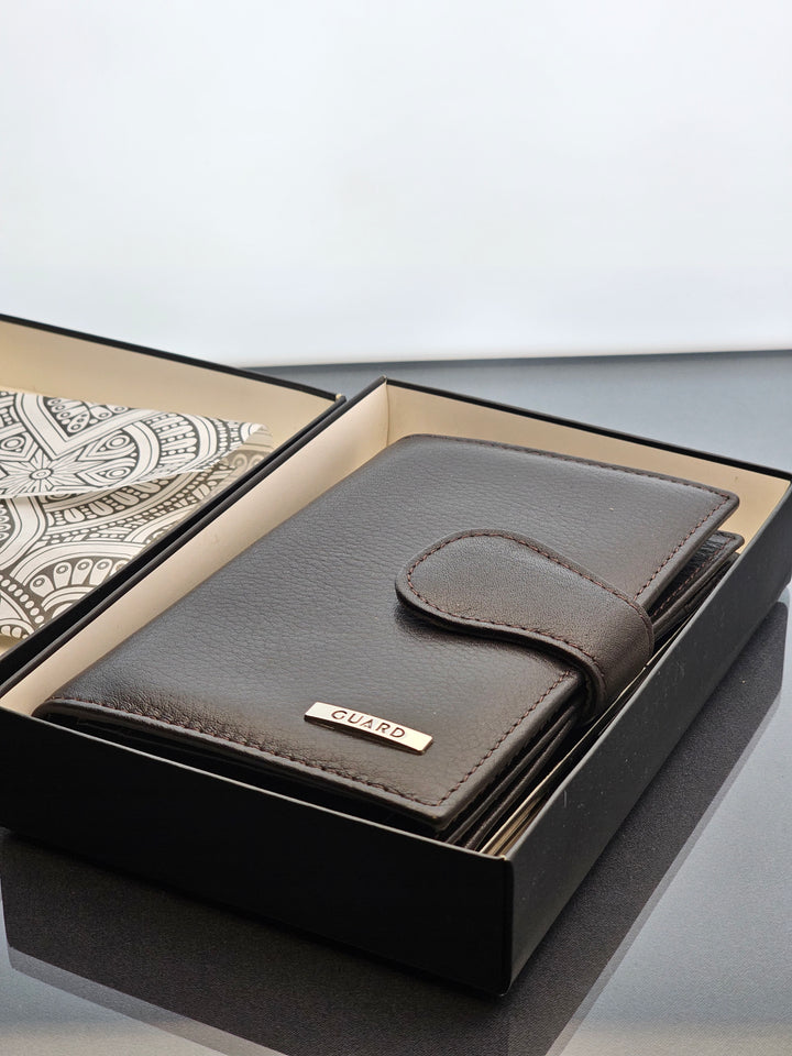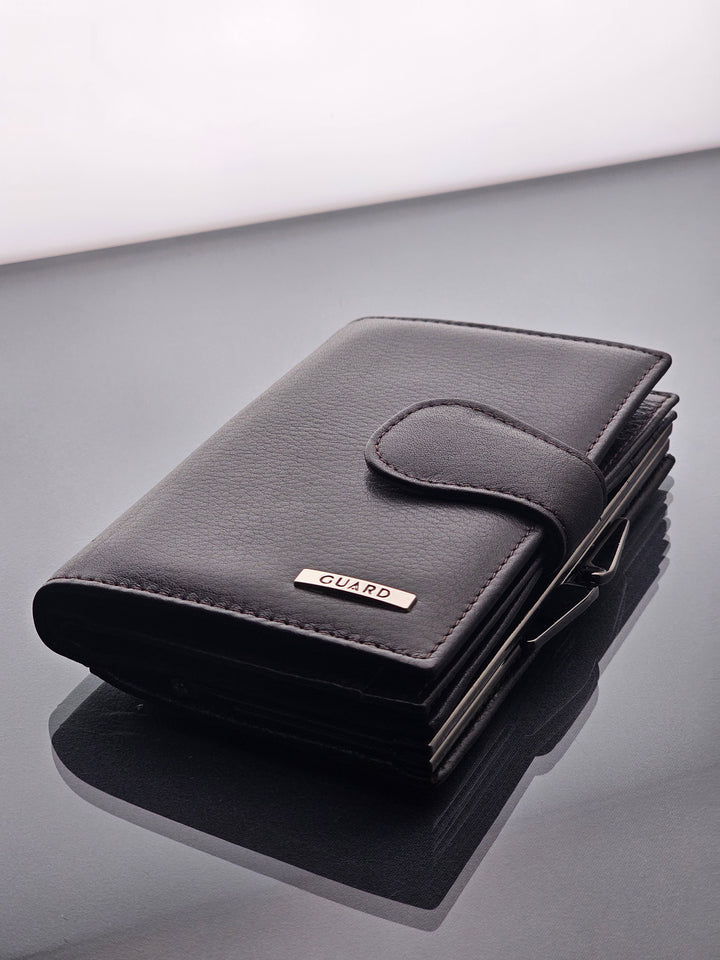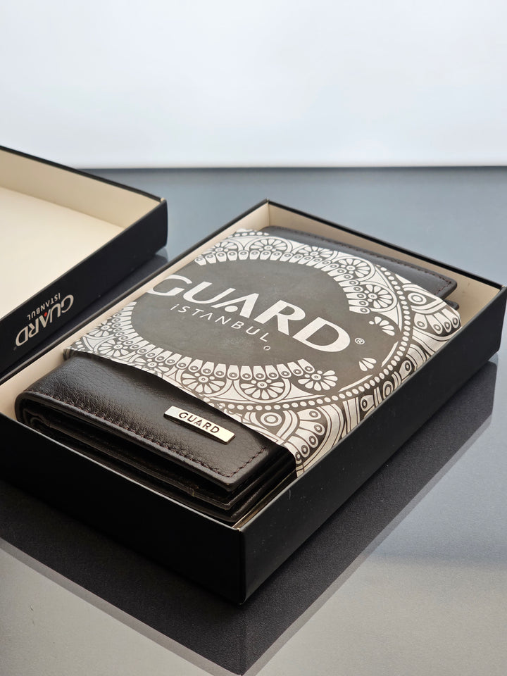 Simple, elegant, and made to last — this Classic Guard Wallet is crafted from high-quality leather with a sleek black finish and a polished metal “GUARD” logo detail. Designed for the modern gentleman, it offers ample space for cards, cash, and IDs, while maintaining a compact, foldable structure with a secure snap closure.