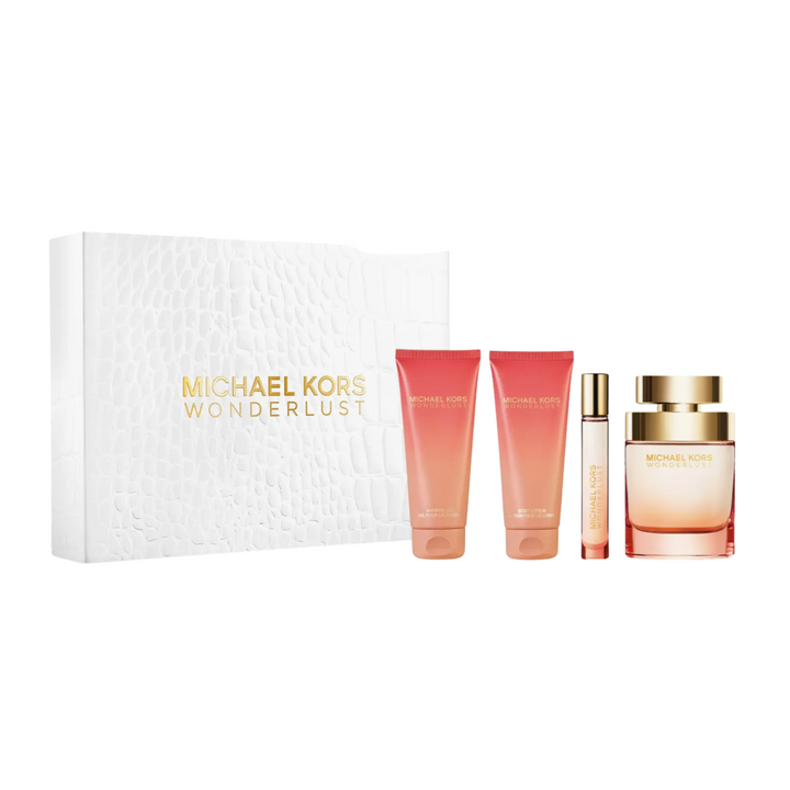 Embark on a journey of luxury and adventure with the Michael Kors Wonderlust 4-Piece Gift Set, inspired by the spirit of escape and discovery. This elegant set includes: