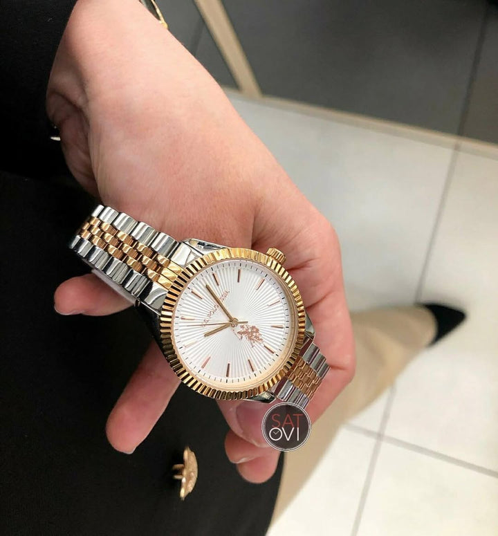 Elevate her style with the USPA2045-05, a sophisticated women’s timepiece that blends elegance and everyday grace. Crafted with a 34 mm rose-gold stainless steel case, mineral crystal glass, and a striking two-tone bracelet in rose-gold and metallic gray, this classic watch exudes refined beauty. With a slim profile (approx. 8 mm thick) and water resistance up to 5 ATM, it’s ideal for dressy occasions or premium everyday wear.