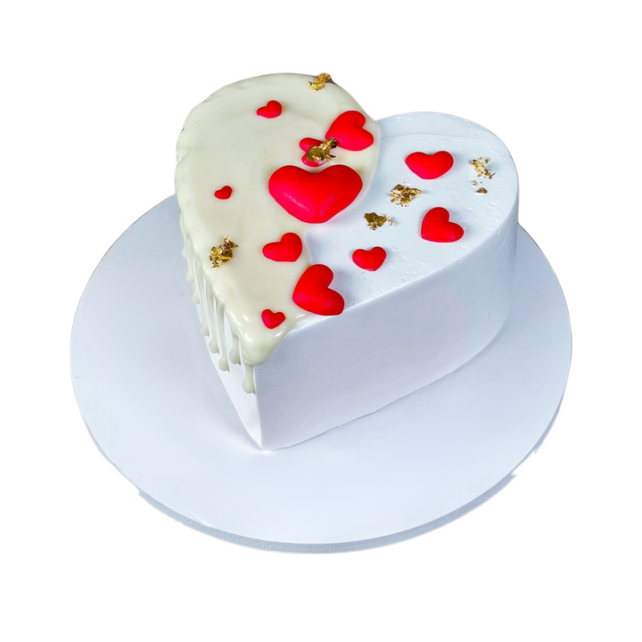 كيكة ناعمة تكفي ٦ اشخاص على شكل قلب أبيض، مزينة بقلوب حمراء صغيرة تعبر عن الحب بطريقة بسيطة وأنيقة. مثالية للمناسبات الرومانسية، كأعياد الحب أو المفاجآت بين الأحبة، أو حتى للاحتفال بزواج أو خطوبة. نكهتها لذيذة وتصميمها يخليها تلفت النظر وتوصل المعنى بدون كلام. توصلها شامية بكل حب داخل أربيل