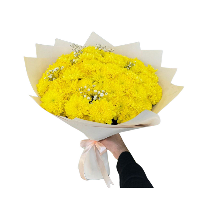 Radiate joy and light with this stunning bouquet of yellow cherry roses beautifully paired with delicate gypsophila. This cheerful arrangement celebrates the warmth of friendship and the happiness of life’s little moments.